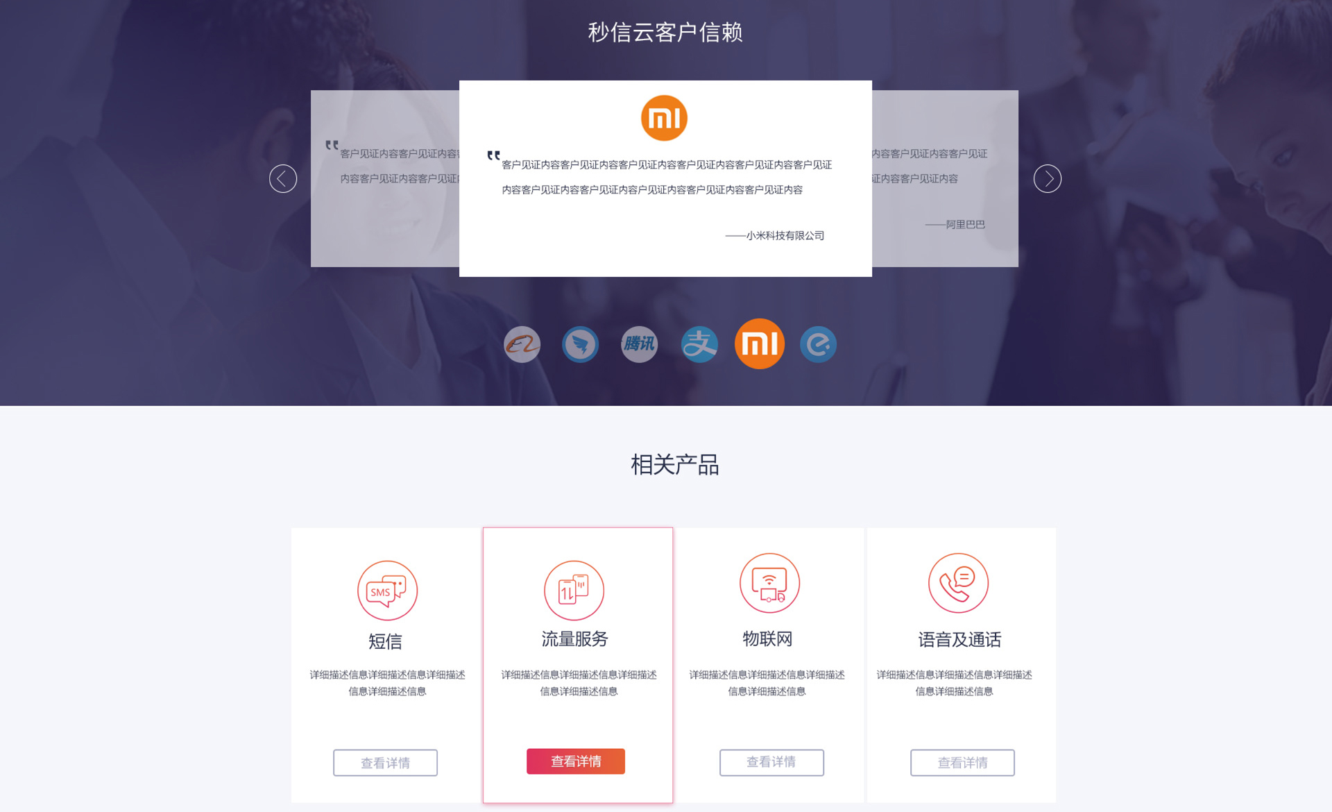 和與德為秒信云打造的官網突出了企業的開放性,安全性的工業互聯網平臺的形象。整體網頁設計風格采用扁平化的設計手法,網頁布局排版也突破傳統,更加簡潔大氣;符合企業的物聯網,大數據等產品調性;體現出秒信云平臺的專業性,便捷性。